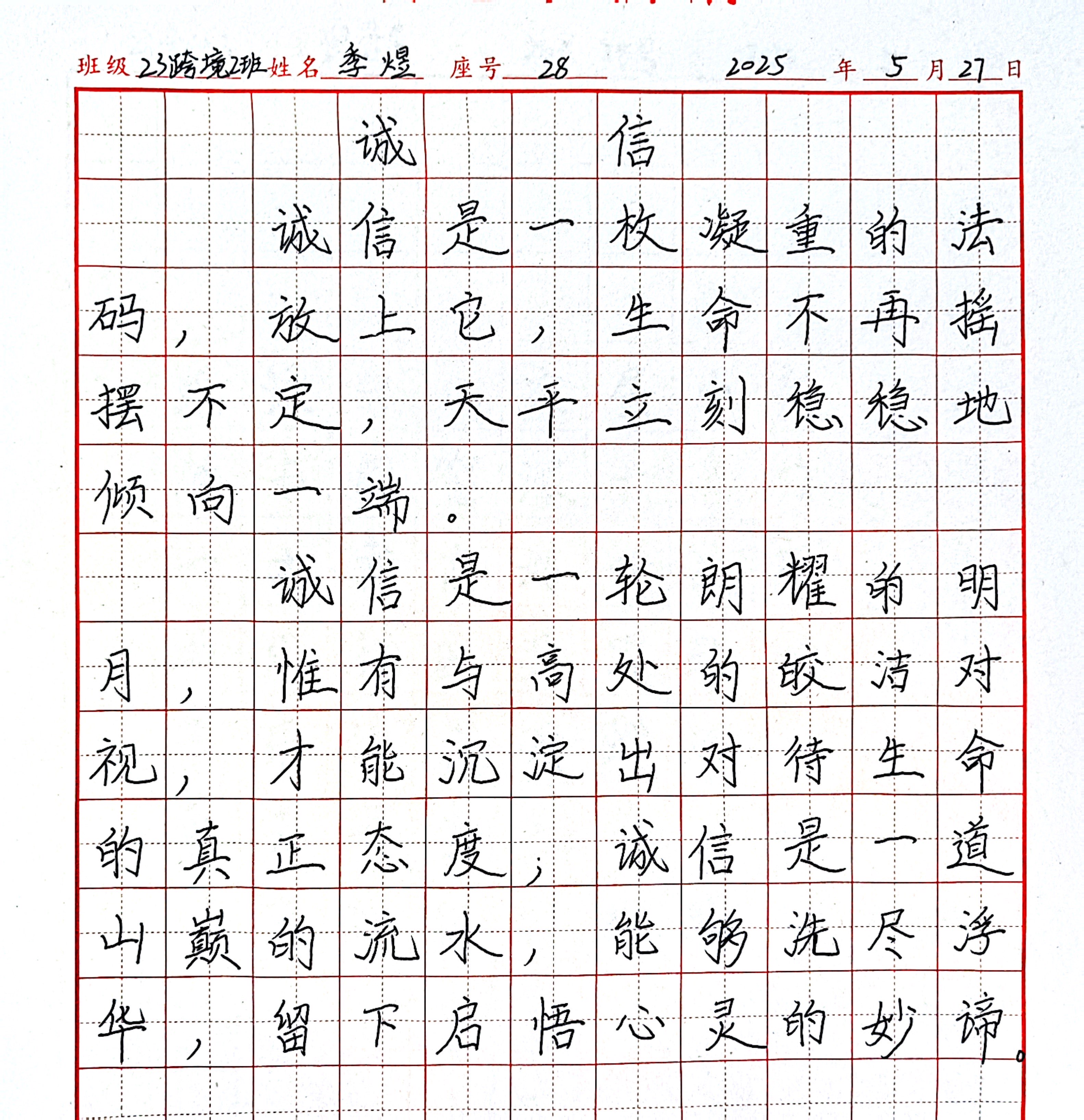 5月27日13:00,博鱼在线平台在厚生楼四楼读书角举办“墨韵书诚信,砺行践初心”砺行读书会系列活动之硬笔书法大赛,此次活动由砺行读书会联合院关工委主办,博鱼在线平台分团委承办,并得到校学生处的全程指导与支持。活动以书法为载体,聚焦“诚信”主题,吸引了40名同学以笔墨传情,现场墨香与文化氛围交融。