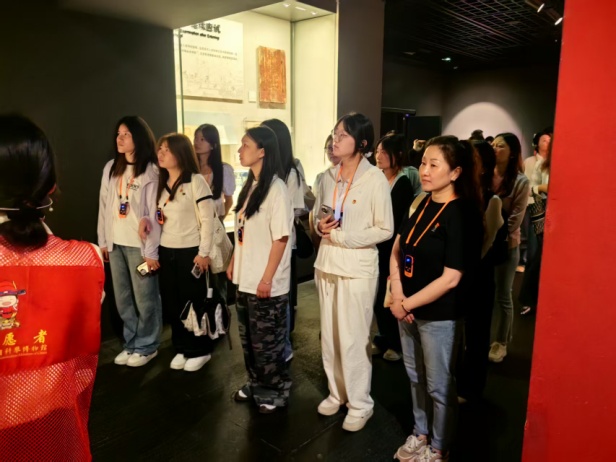 参观结束后,师生迅速投身志愿服务实践中。根据博物馆需求,志愿者分为两组:讲解引导组负责为游客提供导览服务,秩序维护组则在人流密集区域疏导参观路线。“各位游客,现在我们看到的是明代状元赵秉忠的殿试试卷真迹,这份答卷全文2460字无一涂改,堪称‘天下第一卷’……”在讲解岗位上,同学们结合史料与展品,以通俗易懂的语言尝试向游客讲述科举背后的历史故事。而秩序维护组的老师和同学们热情地为参观游客指引路线,并给予帮助。志愿实践活动后,团员同学们总结道:“通过志愿服务,我们不仅传播了文化,更在实践中感受到‘奉献、友爱、互助、进步’的志愿精神。”