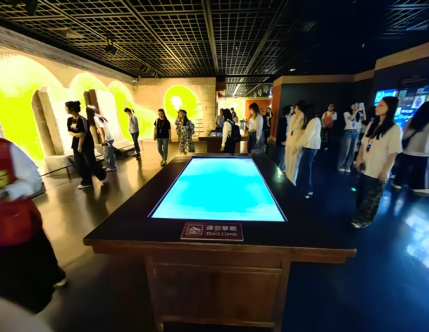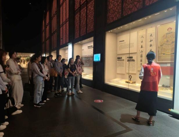 活动首站,全体师生走进中国科举博物馆。这座以科举文化为主题的专题博物馆,以地下一至四层的下沉式设计象征科举制度的千年历史纵深。在讲解员的带领下,师生们依次参观了“科举制度沿革”“科举与社会文明”“科举文物展陈”等展厅,通过实物、文献、多媒体影像等载体,系统了解科举制度从隋唐创立到清末废止的演变历程,感悟其对中国古代政治、教育及文化发展的深远影响。展厅内,一张张泛黄的科举试卷、一枚枚精雕细刻的殿试砚台、一幅幅还原古代科考场景的立体画卷,生动再现了古代学子“十年寒窗”的奋斗精神。党员教师潘蓓感慨道:“科举制度虽已退出历史舞台,但其公平选拔、唯才是举的理念对当今人才选拔仍有启示意义。”团员学生钱馨宇则对“江南贡院”数字化呈现的多样形式印象深刻:“通过数字化展陈,我们直观感受到古代科举的庄严与艰辛,更体会到中华文化一脉相承的韧性。”