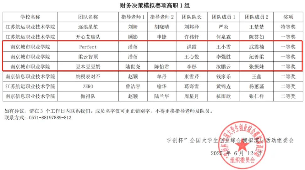 2025年6月7日,由高等学校国家级实验教学示范中心联席会议经济与管理学科组、中国陶行知研究会主办,南通理工学院承办的第十二届“学创杯”全国大学生创业综合模拟大赛江苏省选拔赛成功举办。博鱼在线平台学子在财务决策赛项中表现优异,凭借扎实的专业技能和出色的团队协作,荣获一等奖两项、二等奖一项,展现了学院在财商人才培养方面的突出实力。